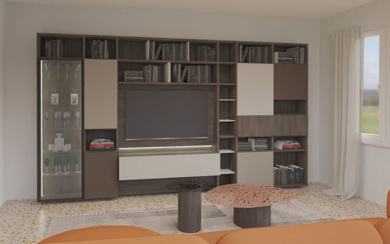 Ce projet englobe les demandes du client pour la réalisation d’une grande bibliothèque pour le salon.