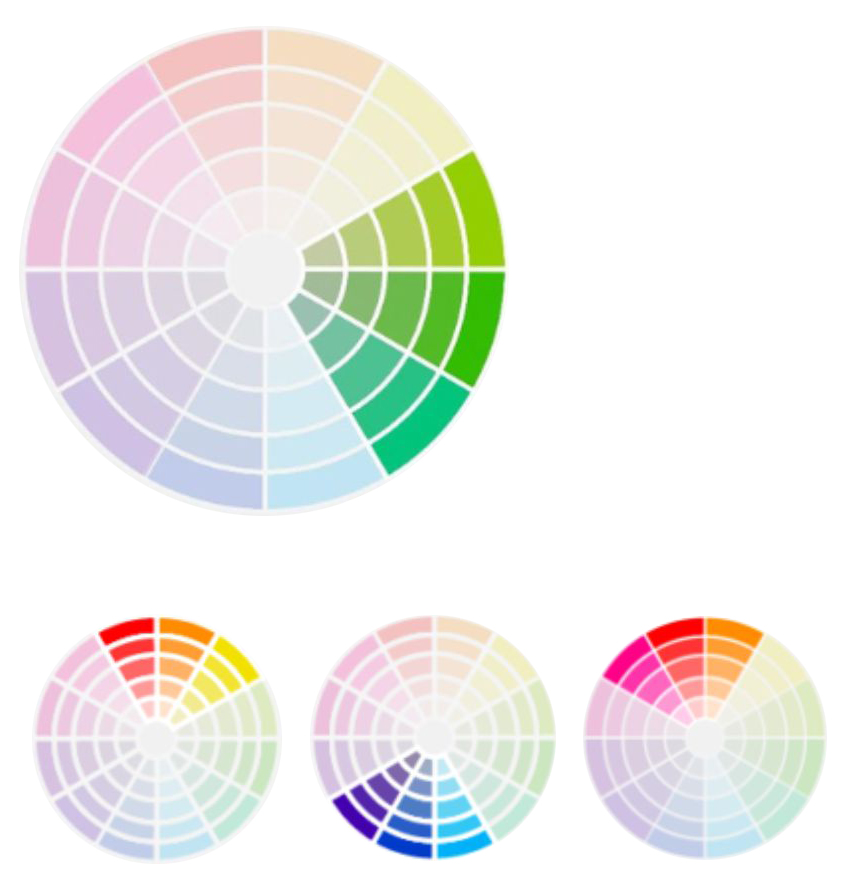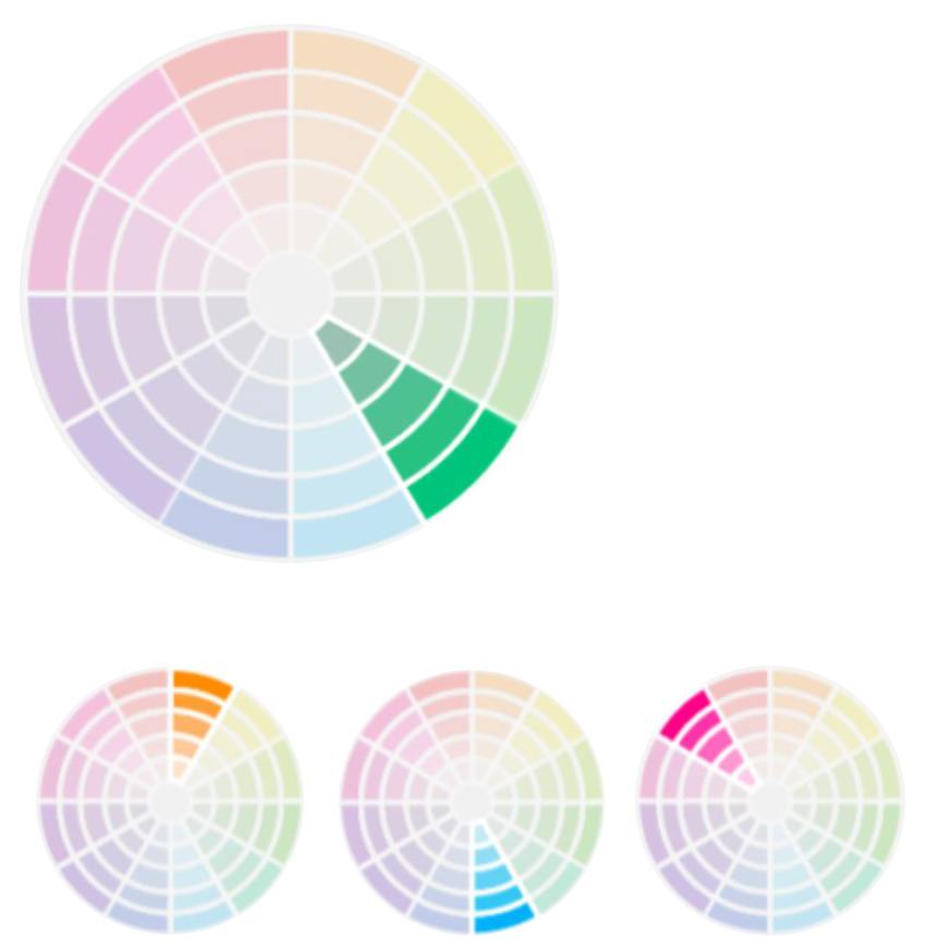 À partir d'une couleur, toutes les couleurs à proximité sont choisies sur le cercle chromatique, soit dans le sens horaire, soit dans le sens antihoraire.