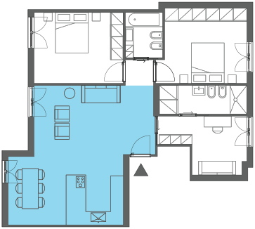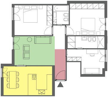Salon avec entrée à l’écart, avec la présence d’un couloir ou d’un couloir de la porte d’entrée. Il permet un degré d’intimité plus élevé, car il n’est pas directement relié à l’entrée de la maison.