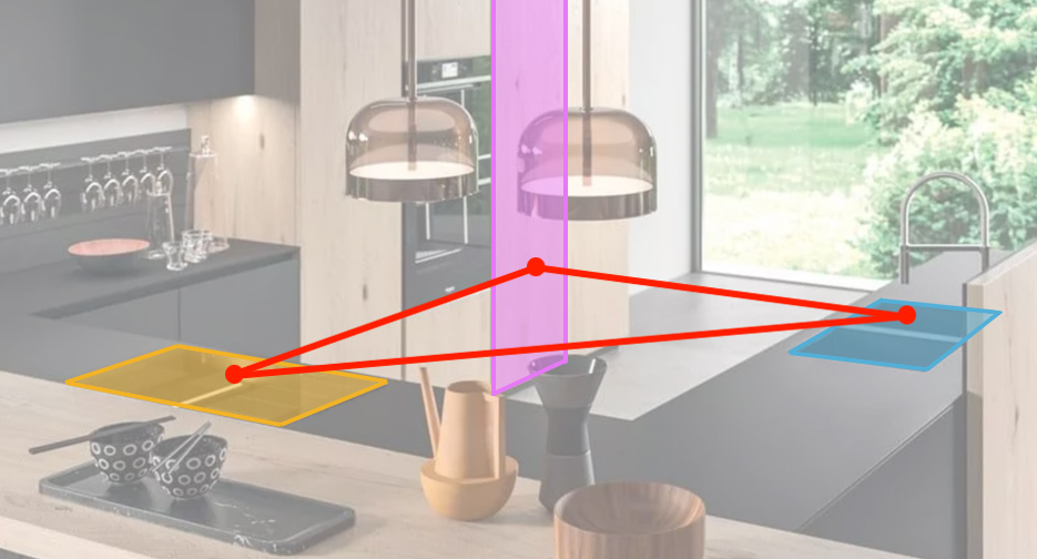 Le triangle de travail est un concept clé dans la conception de la cuisine. Il s’agit d’un triangle imaginaire formé par le réfrigérateur, la cuisine et l’évier; ces trois points doivent être disposés de manière à permettre une circulation facile et un accès facile lors de la préparation des repas.